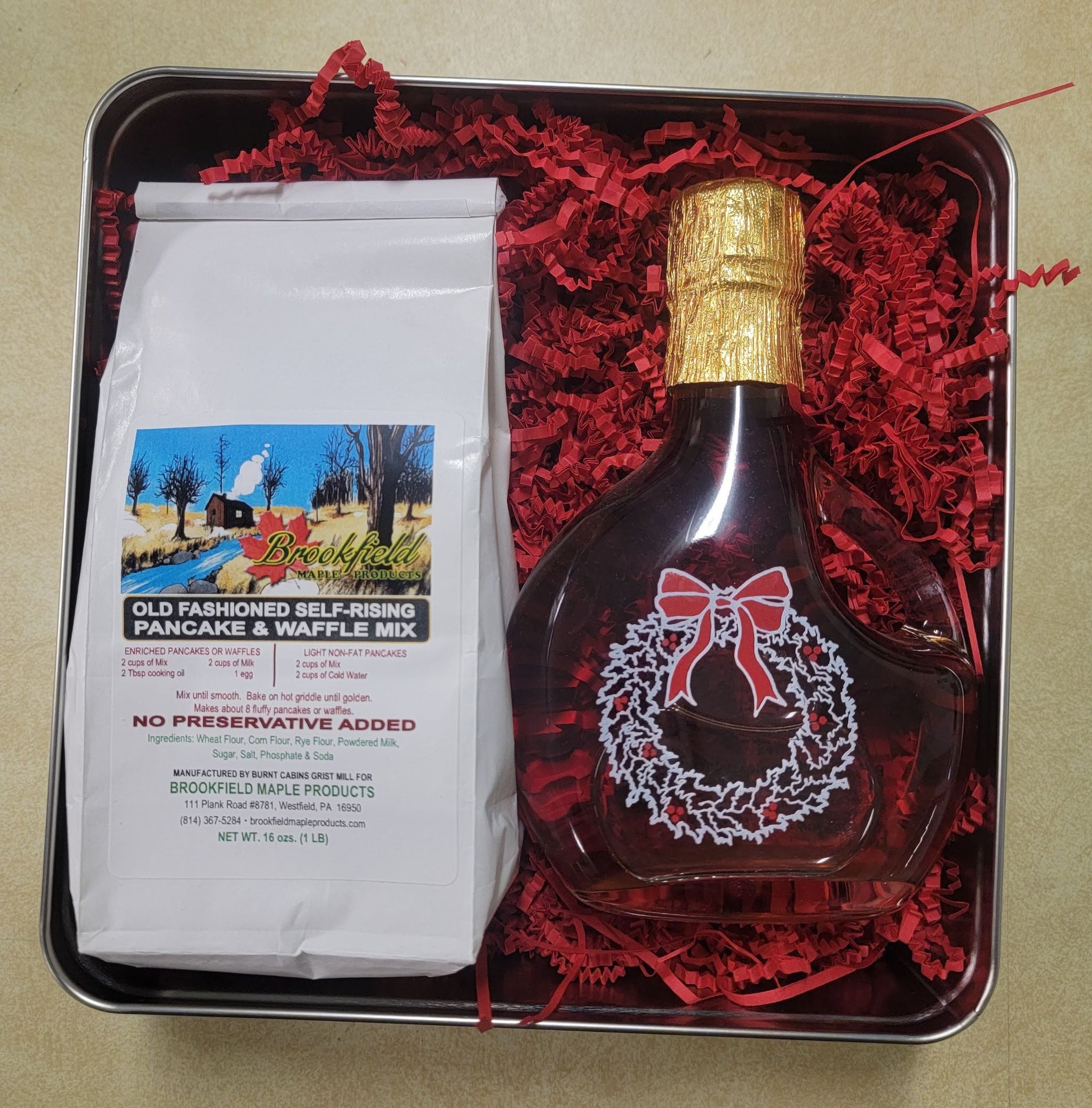 Our Christmas Breakfast Tin here at Brookfield Maple Products is a reusable tin cookie container with a window cover.